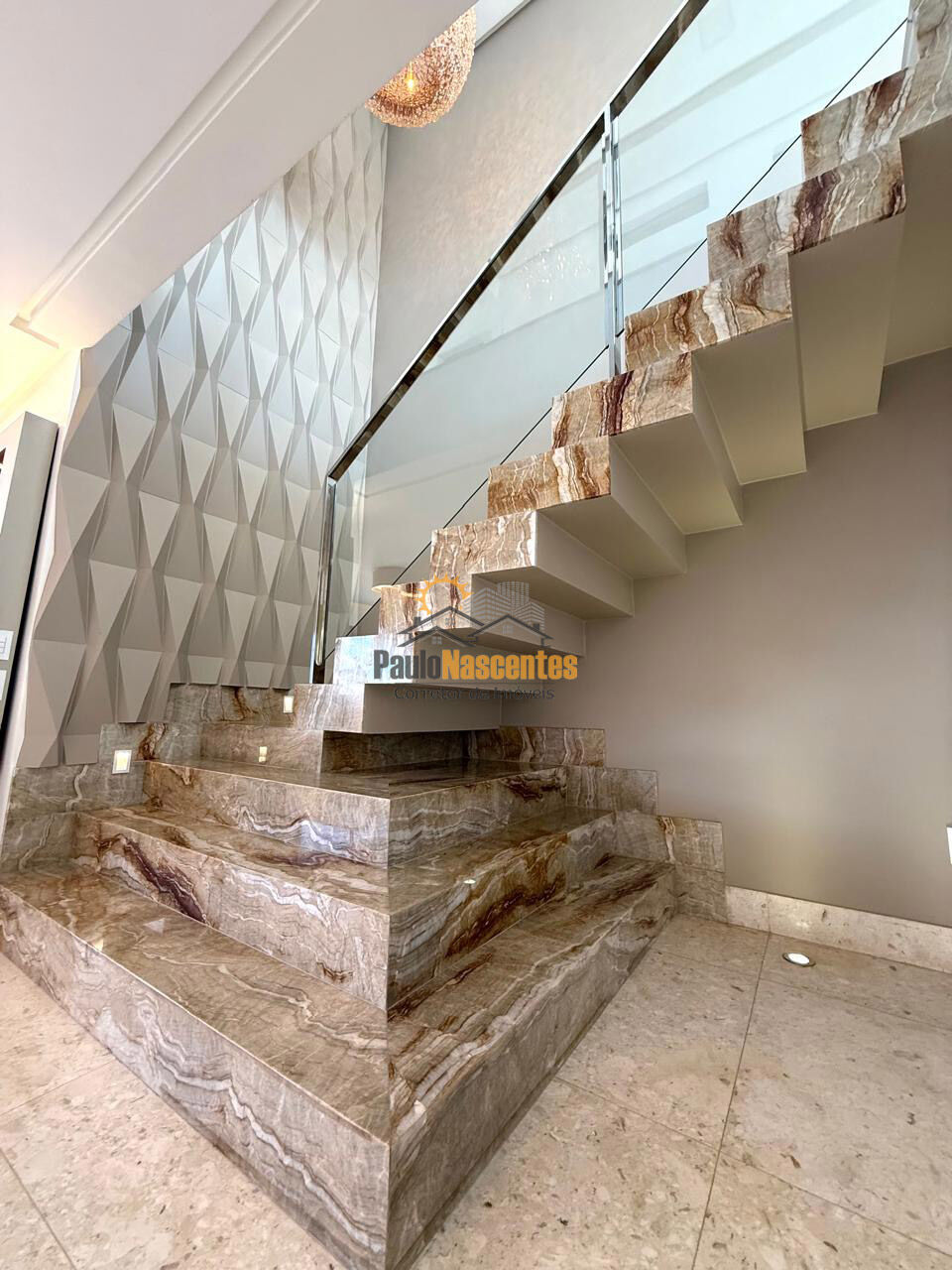 Parte debaixo: 4 suítes sendo uma delas com closet, 1 quarto, lavabo, sala de TV grande, sala de jantar, cozinha, área de serviço.