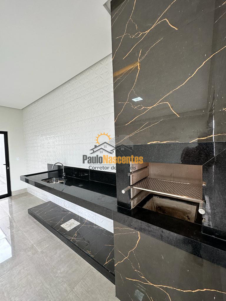 Casa com área de 183m2, lote de 300m2, com 3 quartos sendo 1 suíte, sala de TV e sala de jantar com pé direito duplo e pele de vidro, cozinha, área gourmet, lavabo, área de serviço, banheiro social, 2 vagas de garagem. Aquecedor solar, janelas em alumínio, bancadas em granito, piso porcelanato, gesso rebaixado com luz de led, energia fotovoltaica, pontos de ar condicionado.