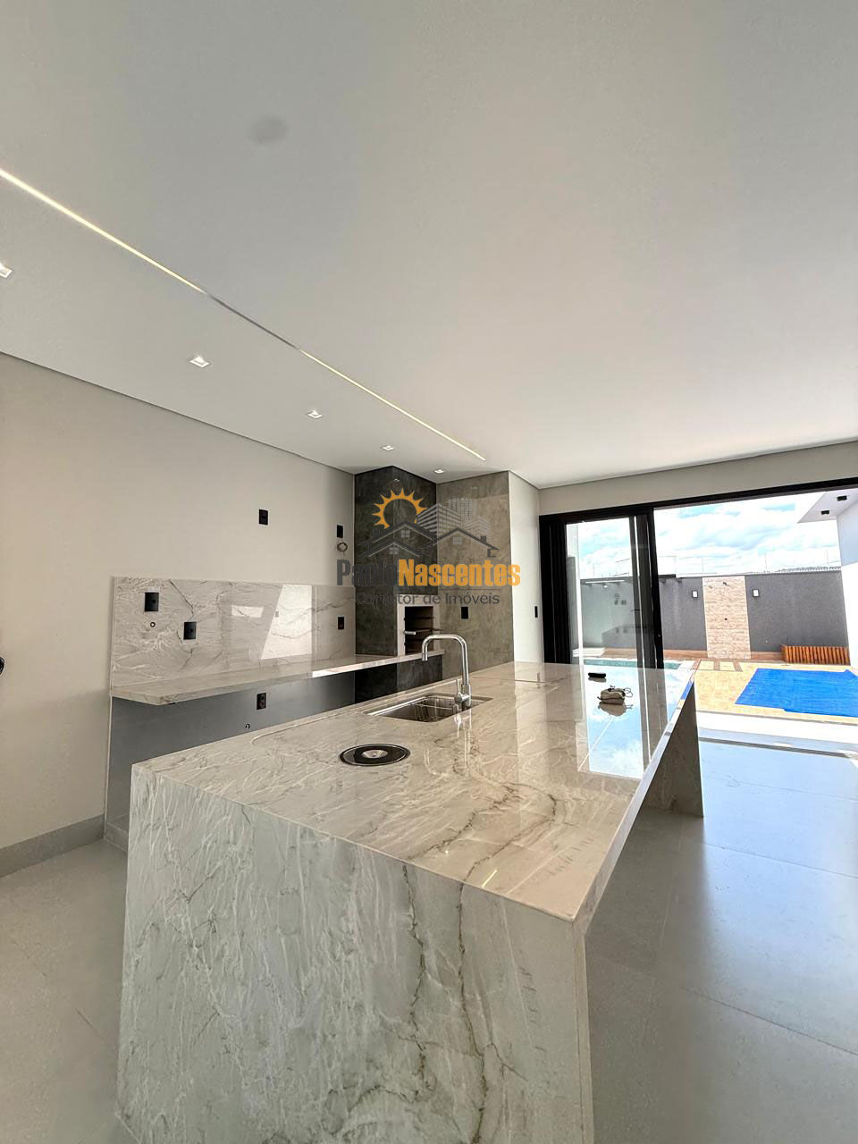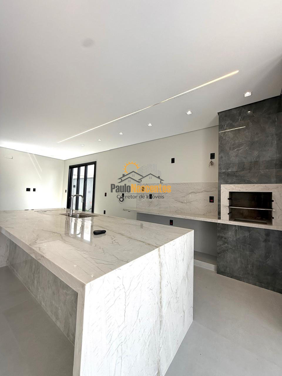 Piso porcelanato, portas e janelas em alumínio, bancadas em granito, gesso rebaixado com luz de led, aquecedor solar, poço artesiano.
