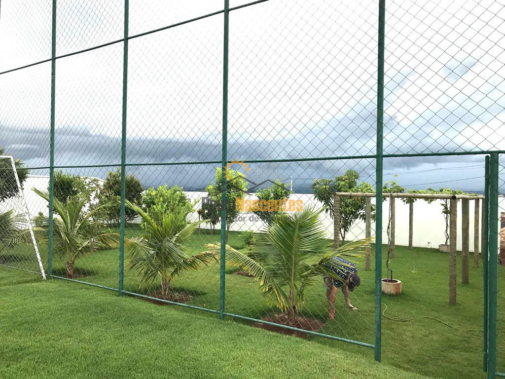o outro no fundo tendo um campo de futebol cercado com estrutura metálica e tela e um pomar no fundo