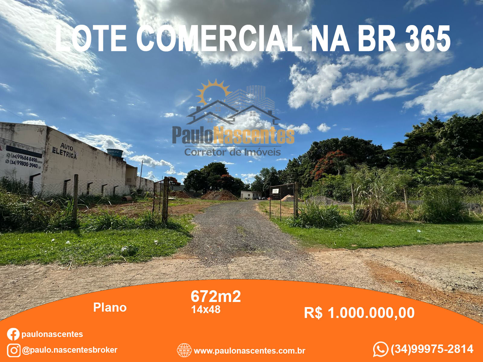 Vende-se lote comercial na BR 365, com 672m2 (14x48), plano