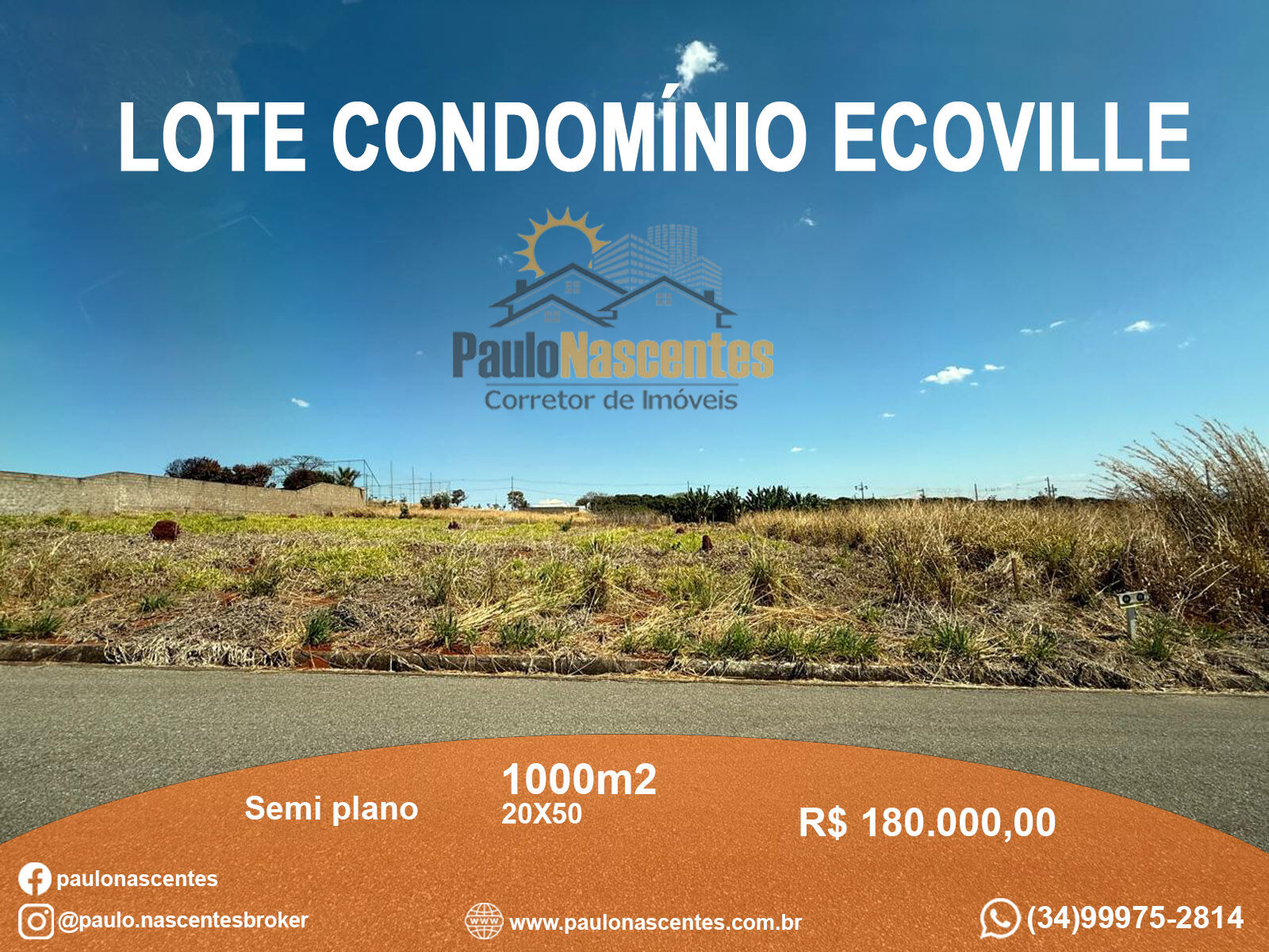 Vende-se lote no Condomínio Fechado Ecoville, com 1000m2 (20x50), semi plano.