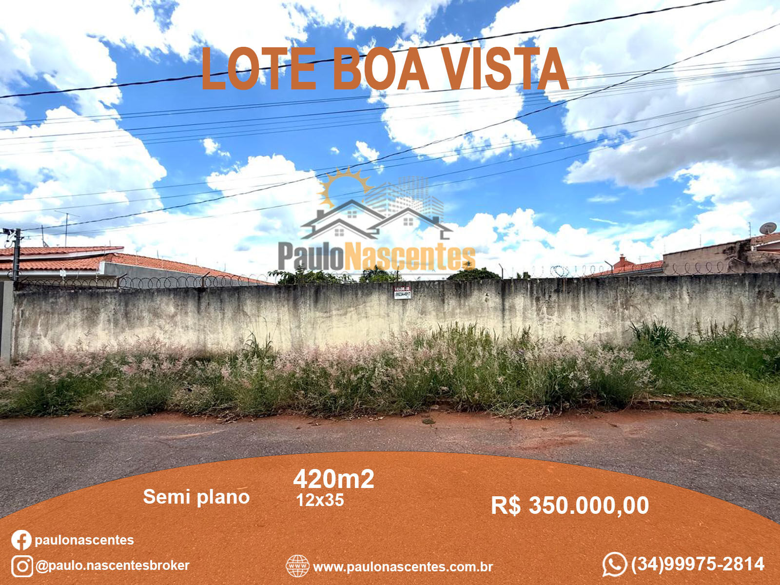 Vende-se lote no Bairro Boa Vista, com 420m2 (12x35), semi plano.